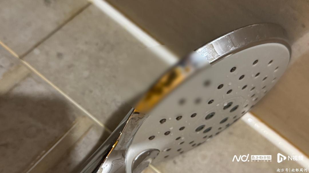 张小姐提供的照片显示,花洒边缘有明显黄色异物。